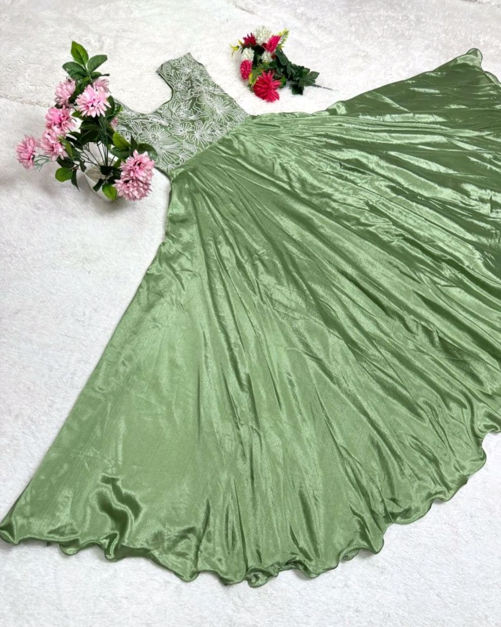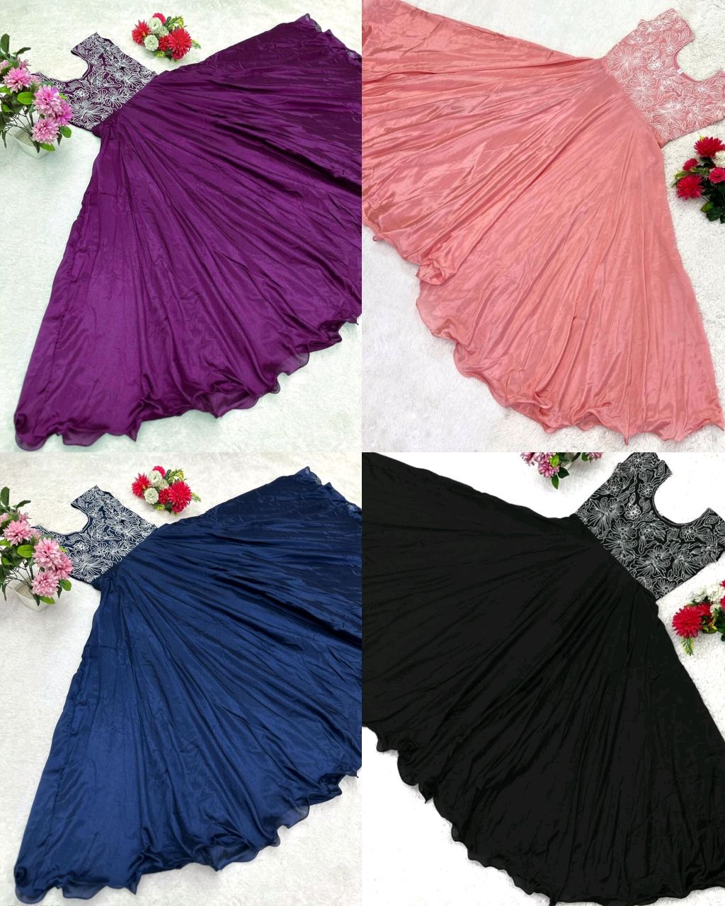 Trendy Embroidered Work and Beautiful 🔸Fabric: Soft Chinon Silk 🔸Flare with Picco Work 🔸Fully Stitched 🔸Length : 53″ 🔸Shoulder :15 🔸Flair : 3.8 MTR 🔸Lining: Micro Cotton 🔸BUST SIZE : S – 36, M – 38 in, L – 40 in, XL – 42, XXL – 44, XXXL – 46