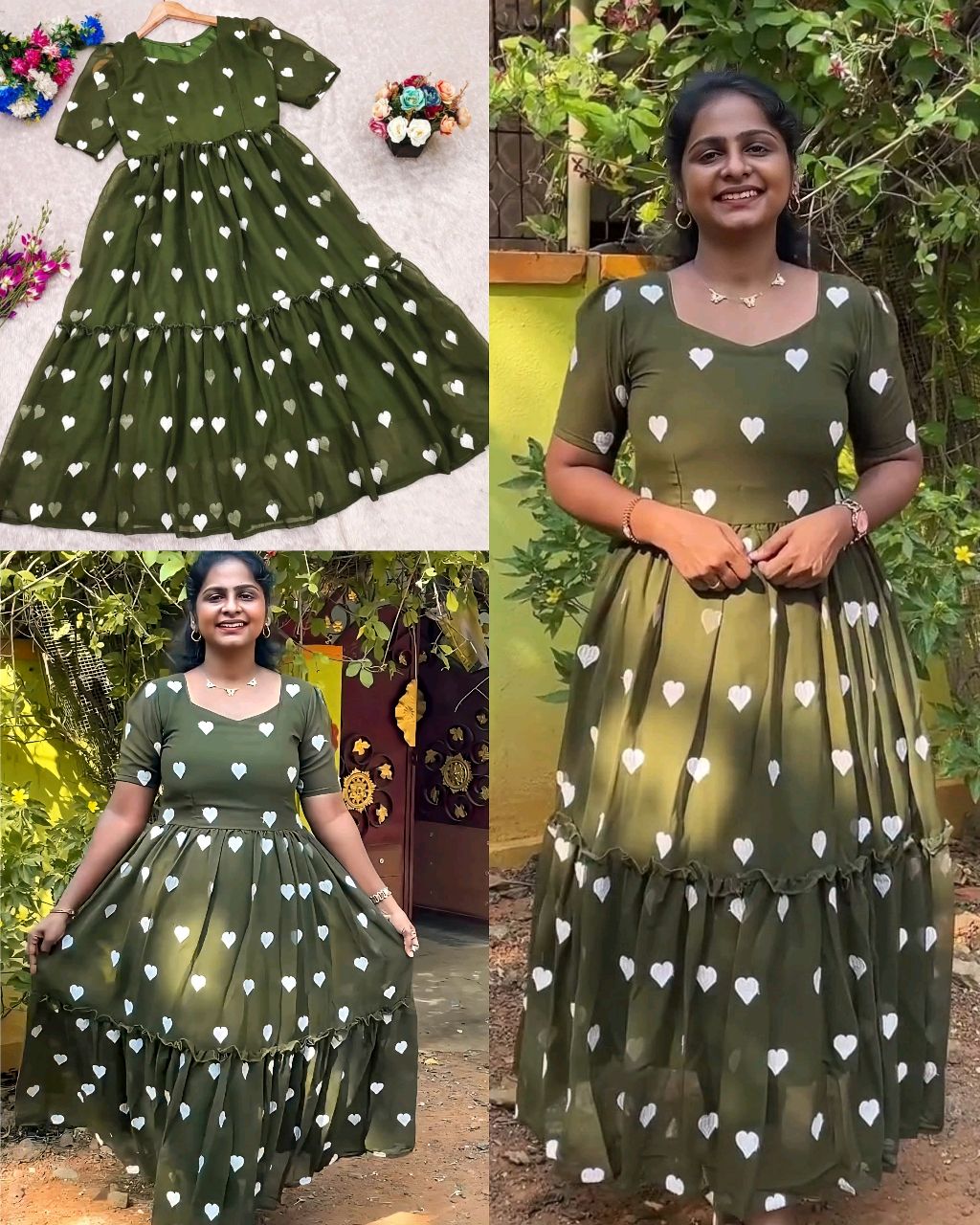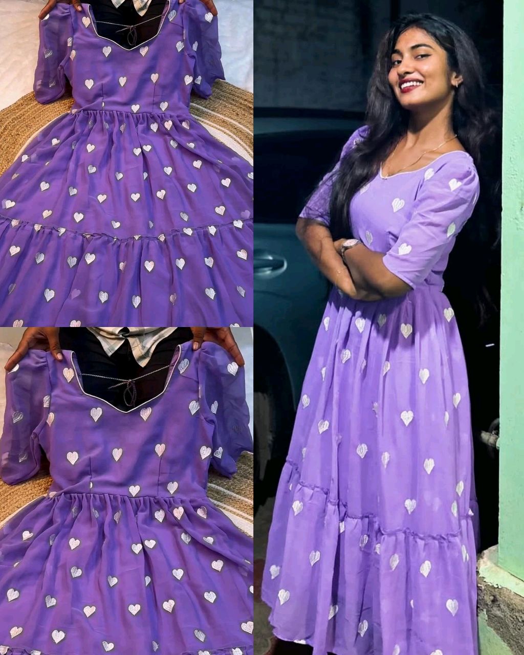 Trendy Fashionable Heart Printed Dresses 🔸 Fabric : HEAVY GEORGETTE 🔸Complete linning 🔸Length 47″+ 🔸Slevees Short ❣ 🔸Net Quantity (N) : Single 🔸BUST SIZE : XS – 34, S – 36, M – 38 in, L – 40 in, XL – 42, XXL – 44, XXXL – 46