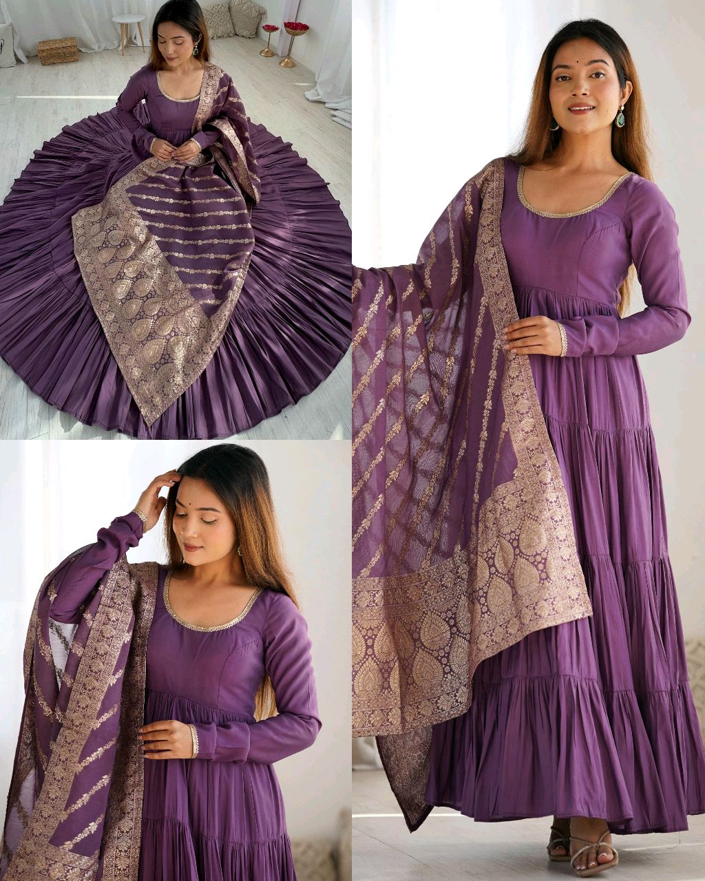 TRENDY FULLY FLAIR ANARKALI, WITH DUPPTA SET, PANT READY TO WEAR