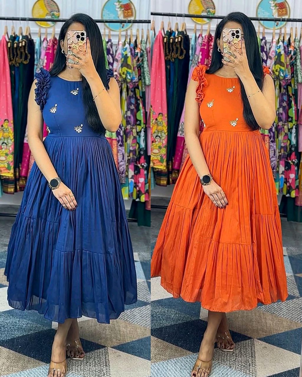 Trendy Gown Dresses 🔸Fabric : Maska Cotton 🔸Complete Linning 🔸Length:- 48″+ 🔸Sleeveless 🔸Flare 3.5 Mrts 🔸Beautiful Oranges all over 😍 🔸BUST SIZE : XS – 34, S – 36, M – 38 in, L – 40 in, XL – 42, XXL – 44, XXXL – 46