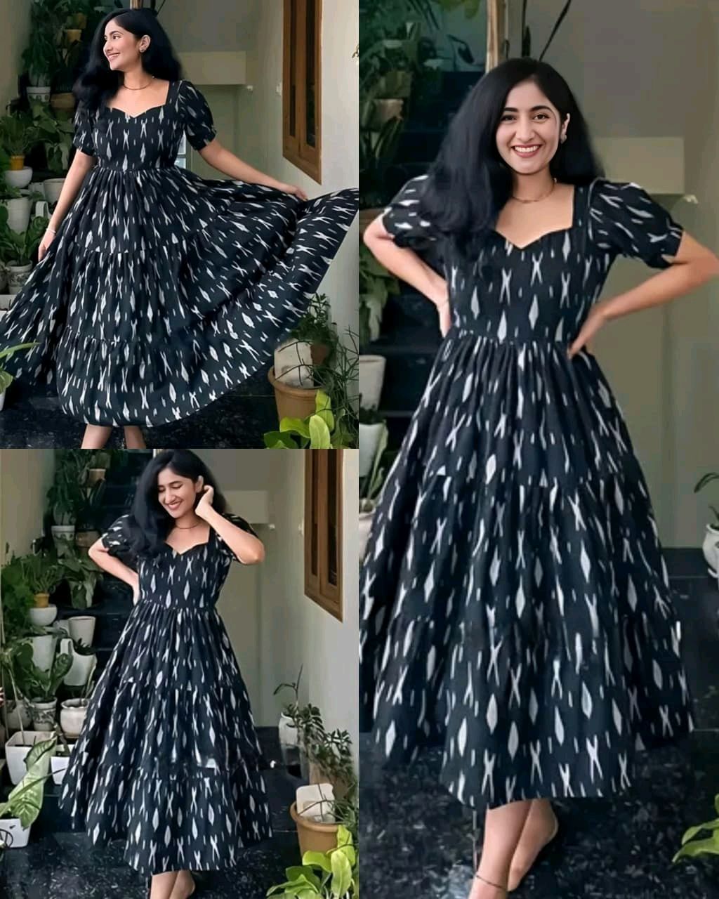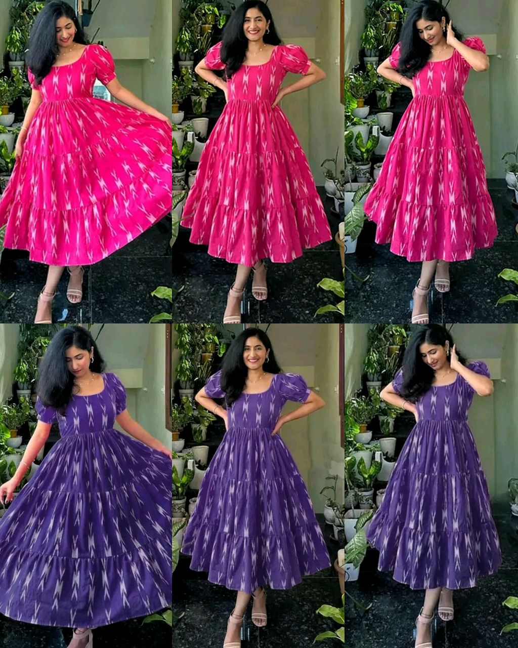 Trendy Gown Dresses 🔸Fabric: Rayon 🔸Three-Quarter Sleeves 🔸Pattern: Printed 🔸BUST SIZE : S – 36, M – 38 in, L – 40 in, XL – 42, XXL – 44