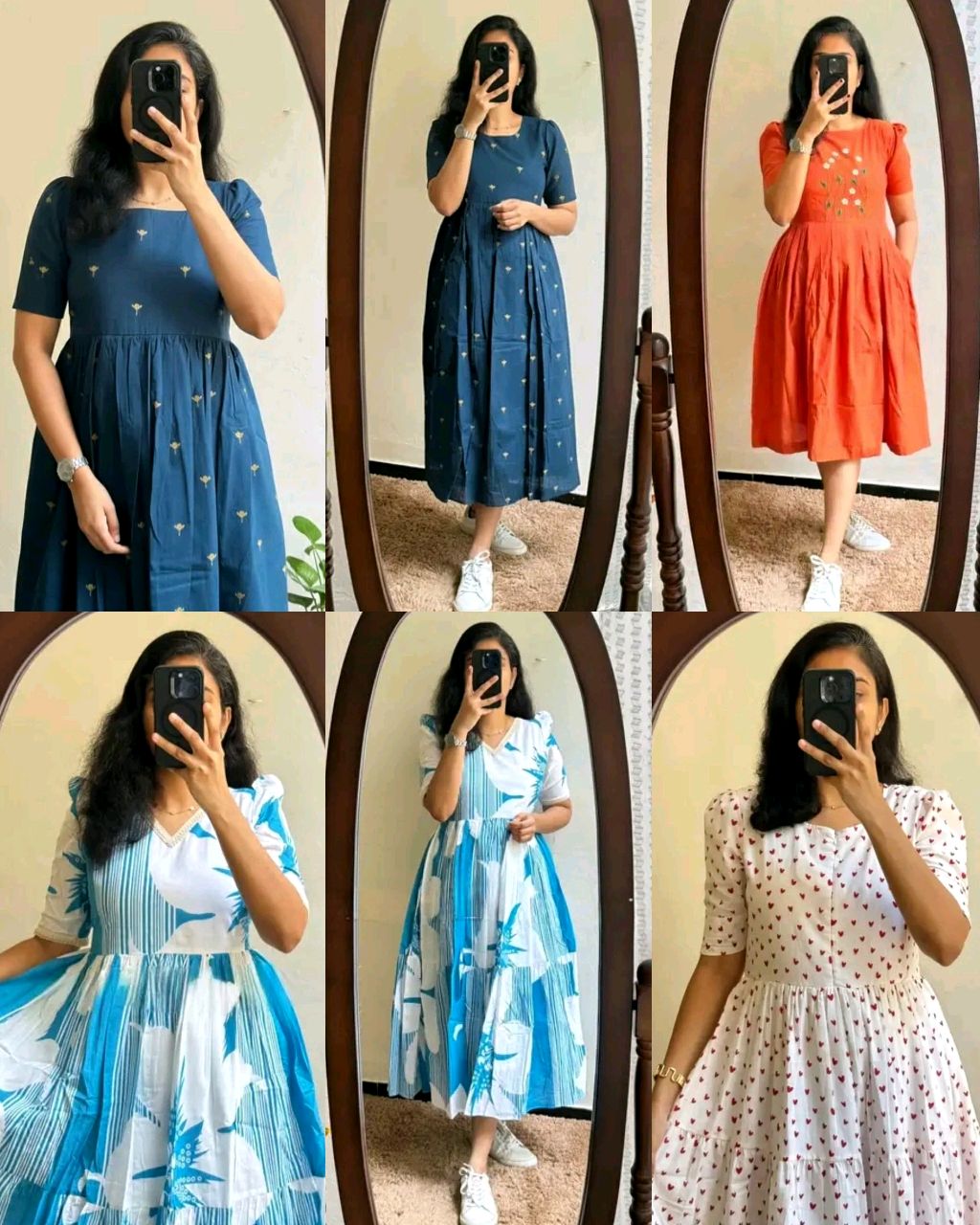 Trendy Gown Dresses 🔸Fabric: Rayon 🔸Three-Quarter Sleeves 🔸Pattern: Printed 🔸BUST SIZE : S – 36, M – 38 in, L – 40 in, XL – 42, XXL – 44