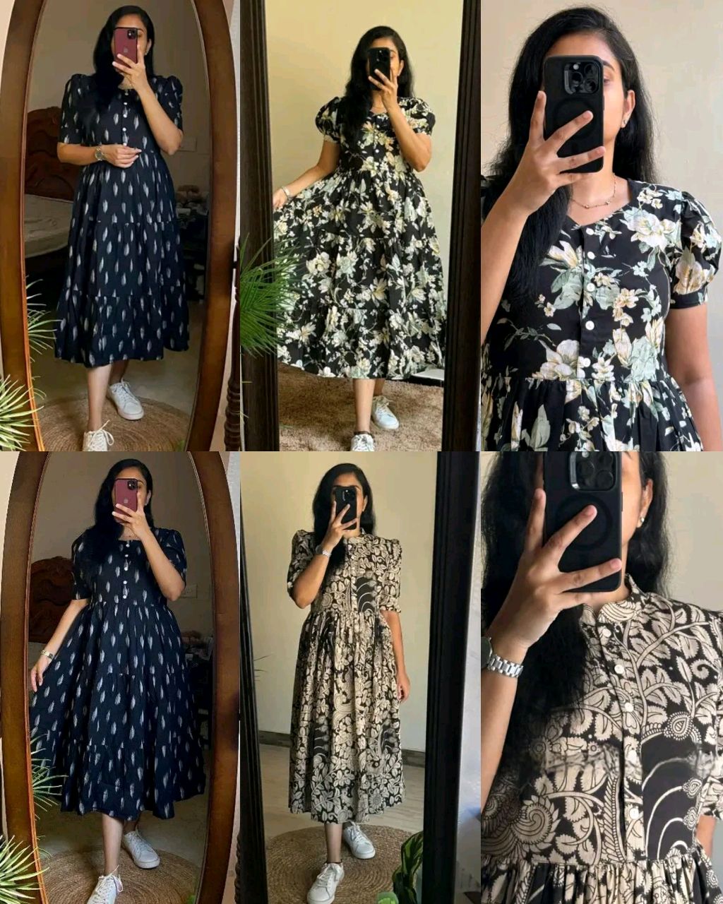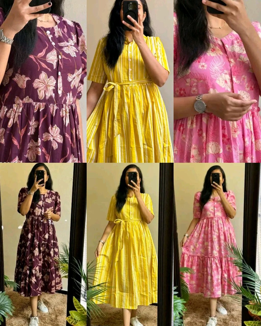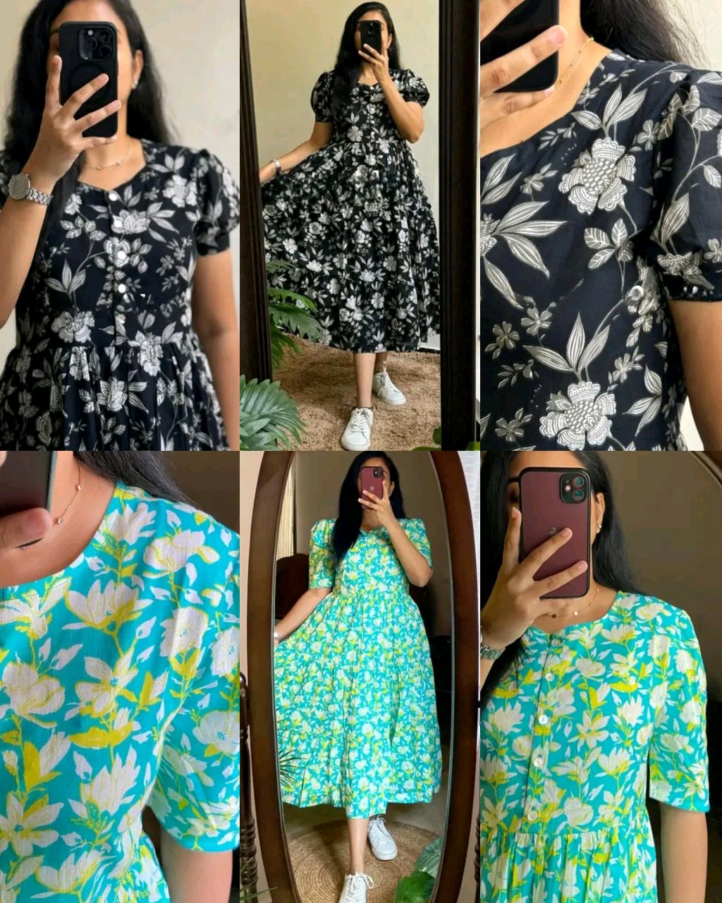 Trendy Gown Dresses 🔸Fabric: Rayon 🔸Three-Quarter Sleeves 🔸Pattern: Printed 🔸BUST SIZE : S – 36, M – 38 in, L – 40 in, XL – 42, XXL – 44