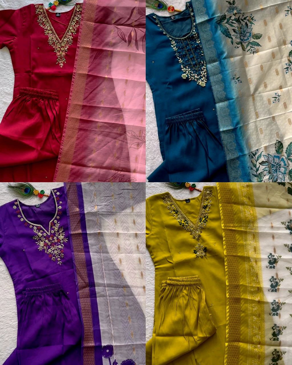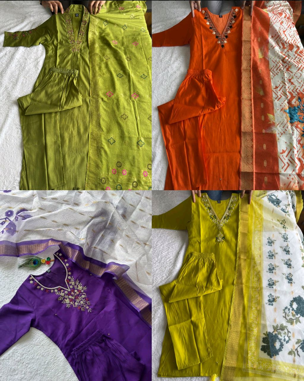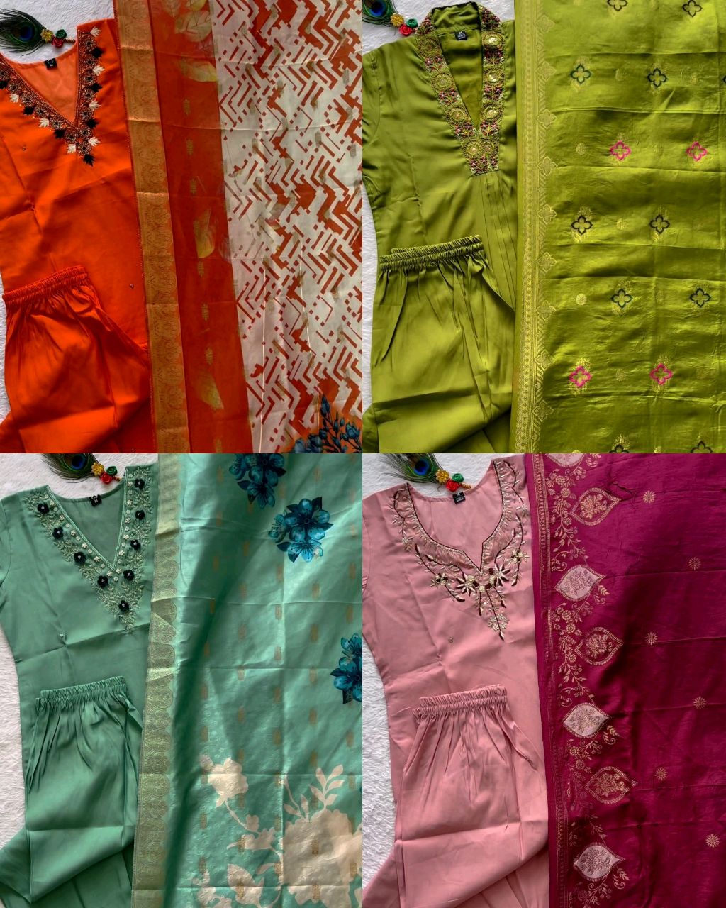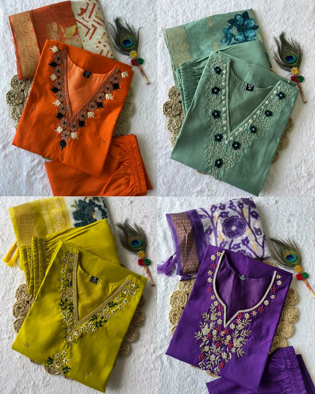 Trendy Handwork Launching New Designers Kurti Pant Dupatta Set