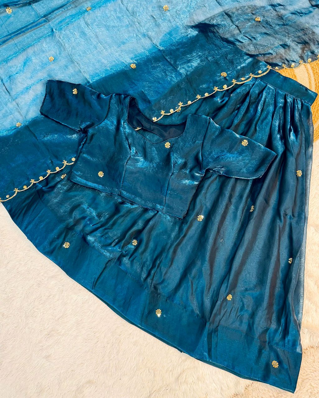 6 reviews for Trendy Hit Premium Pure Space Silk Half Saree With Handwork Cutt Dana Work Collection
