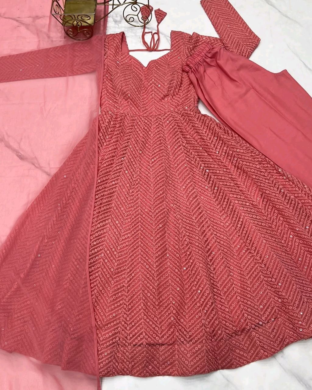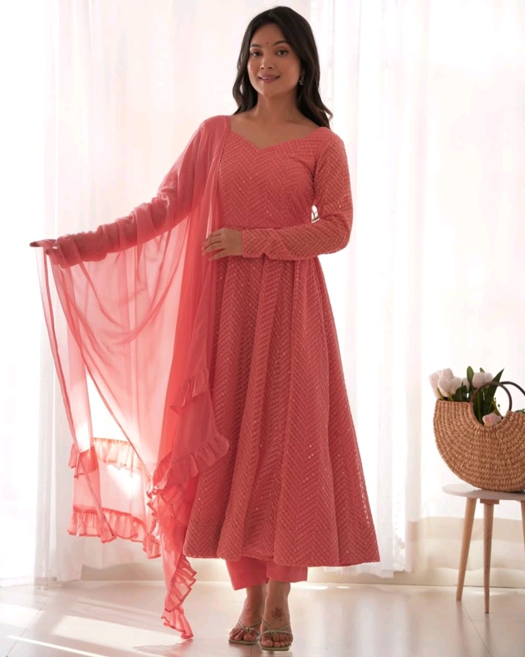 🔸 Fabric : HEAVY PURE SOFT FOX GEORGETTE LUKHNOWI SEQUENCE WORK