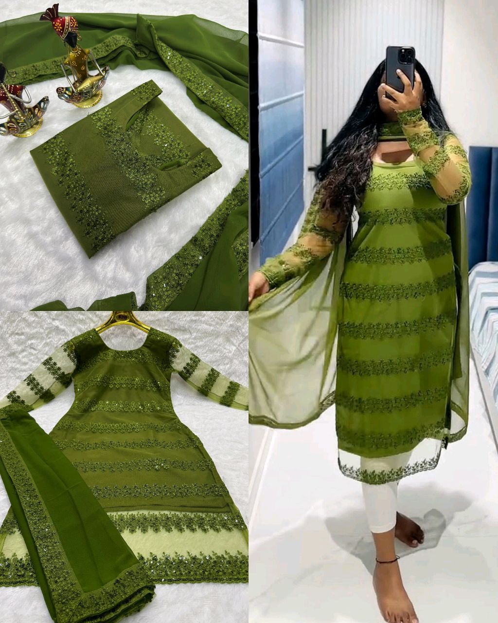 Trendy New Designer Sequins Embroidered Kurti And Duptta Set 🔸Fabric: Net With Sequins Embroidered 🔸(Full lining available inside And Back Side Dori With Fumka) 🔸Duppta: 2.10 Miter Sequence 4Side Lace With Georgett 🔸 Length :44 Inch 🔸Sleeves:Log 24 inch sleeve 🔸BUST SIZE : S – 36, M – 38 in, L – 40 in, XL […]