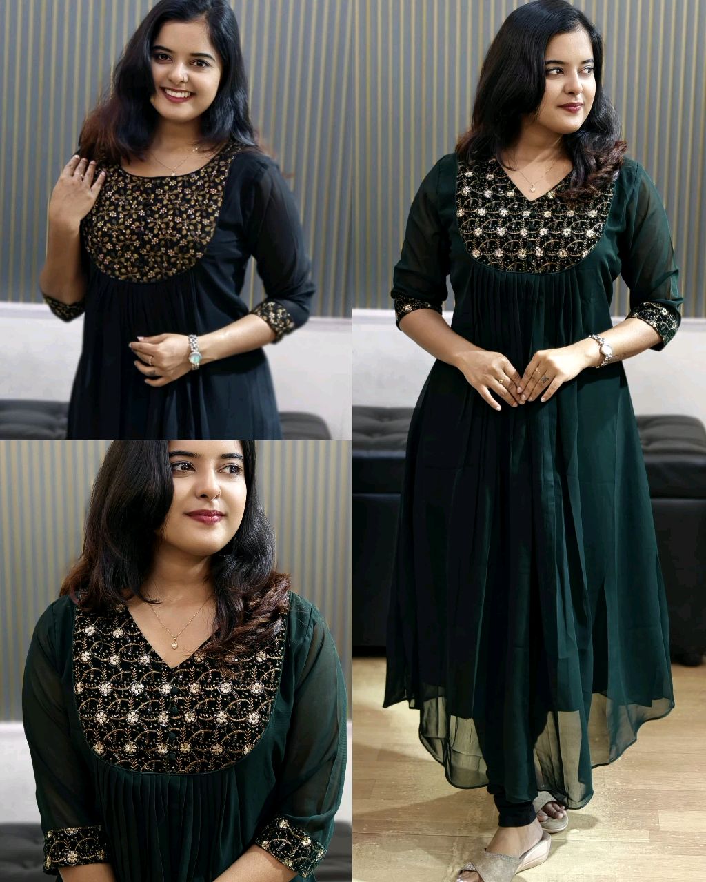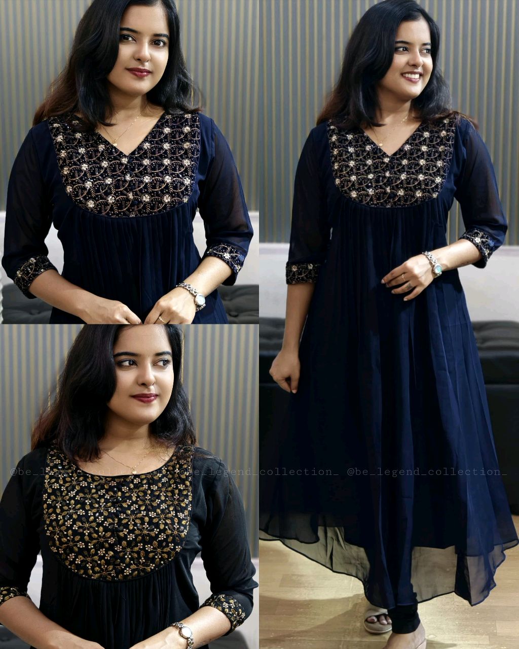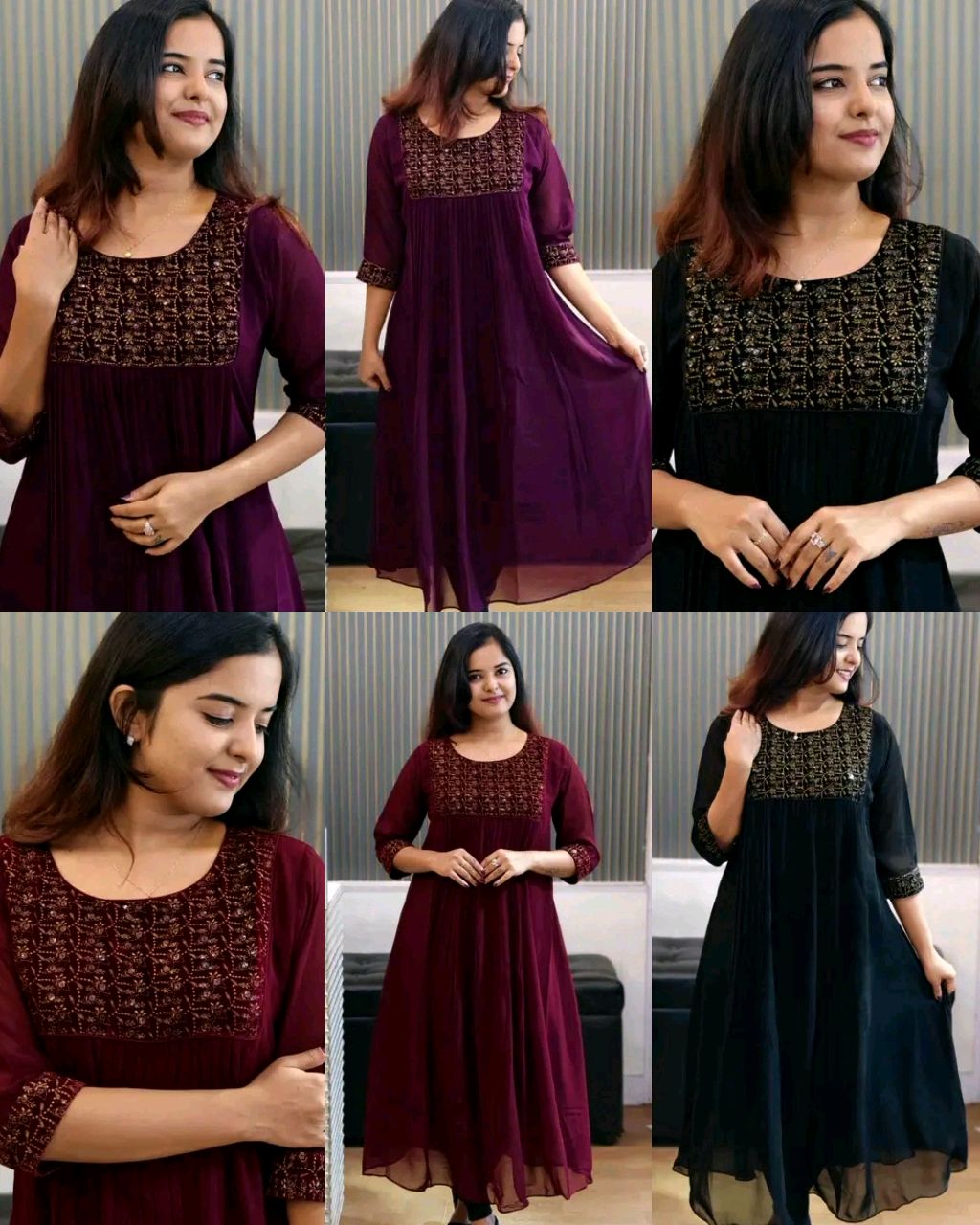 Trendy Special Launching Beautiful Handwork Kurti 🔸Fabric: Georgette 🔸Length*: 52 🔸Flare*: 4 🔸Work*: Beautiful Handwork 🔸Sleeve Length: Three-Quarter Sleeves 🔸Combo of: Single 🔸BUST SIZE : XS – 34, S – 36, M – 38 in, L – 40 in, XL – 42, XXL – 44, XXXL – 46