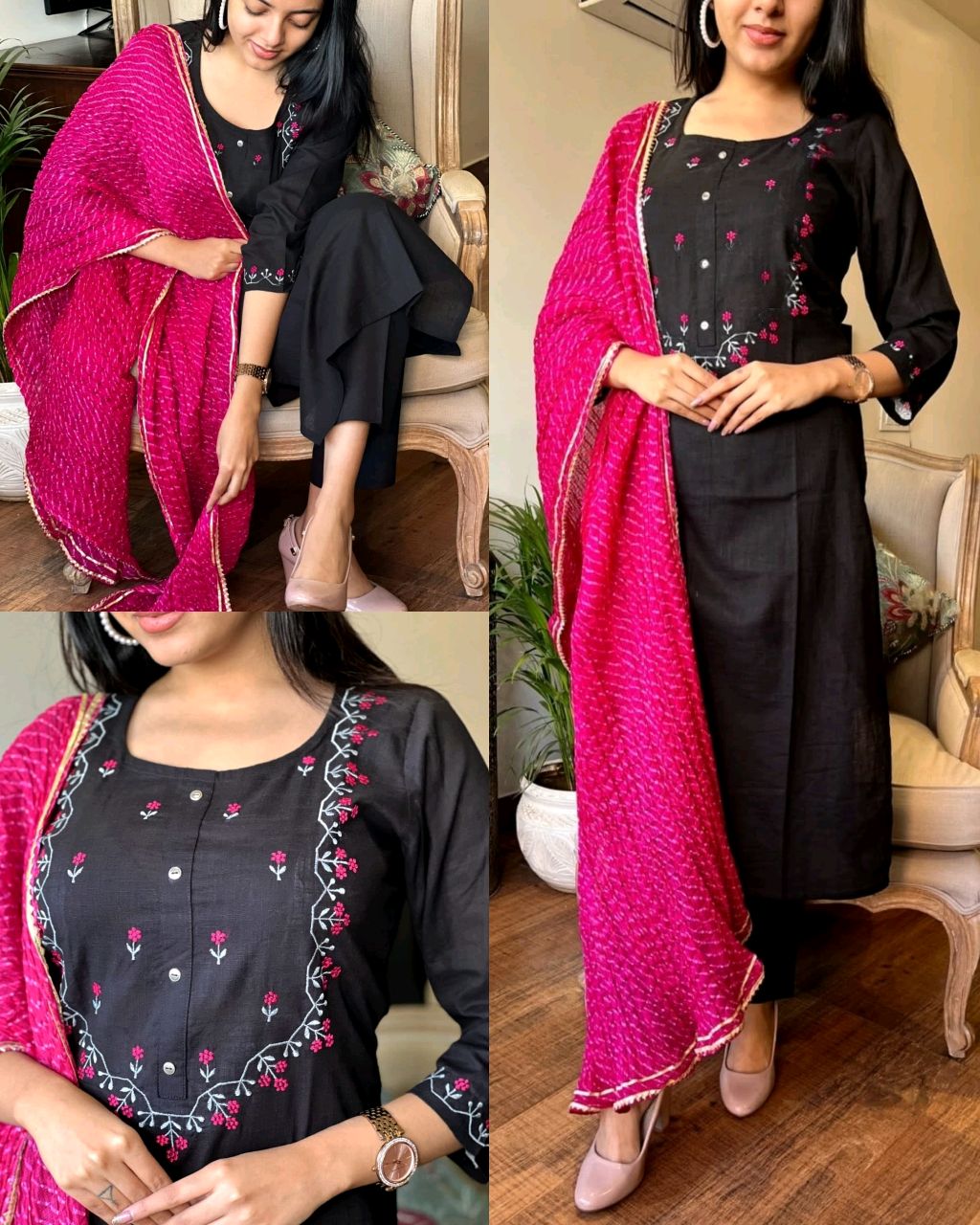 2 reviews for Trendy Women’s Cotton Kurta Pant Set With Dupatta