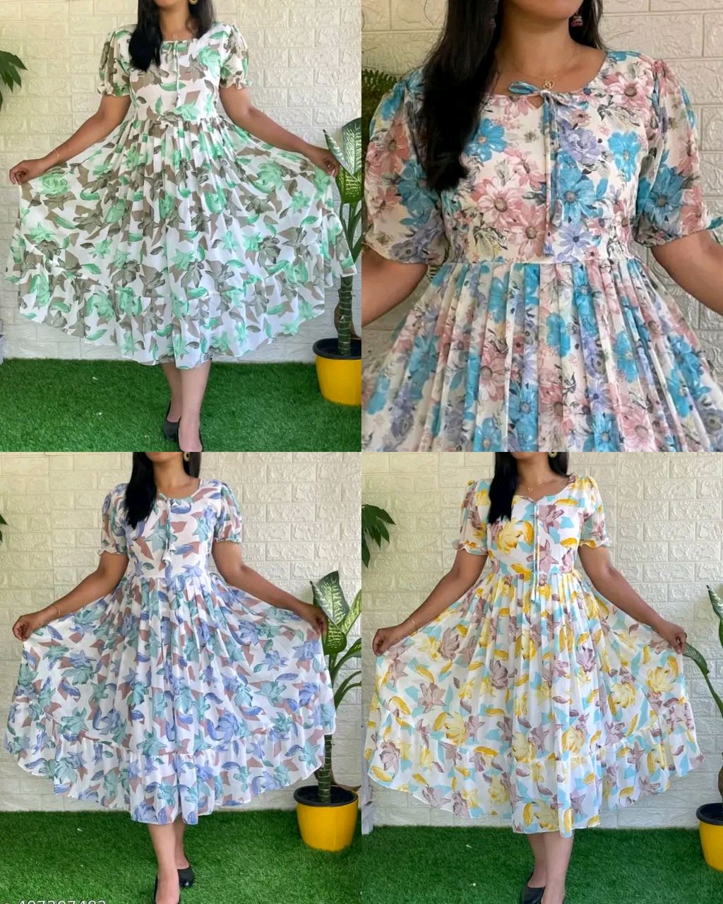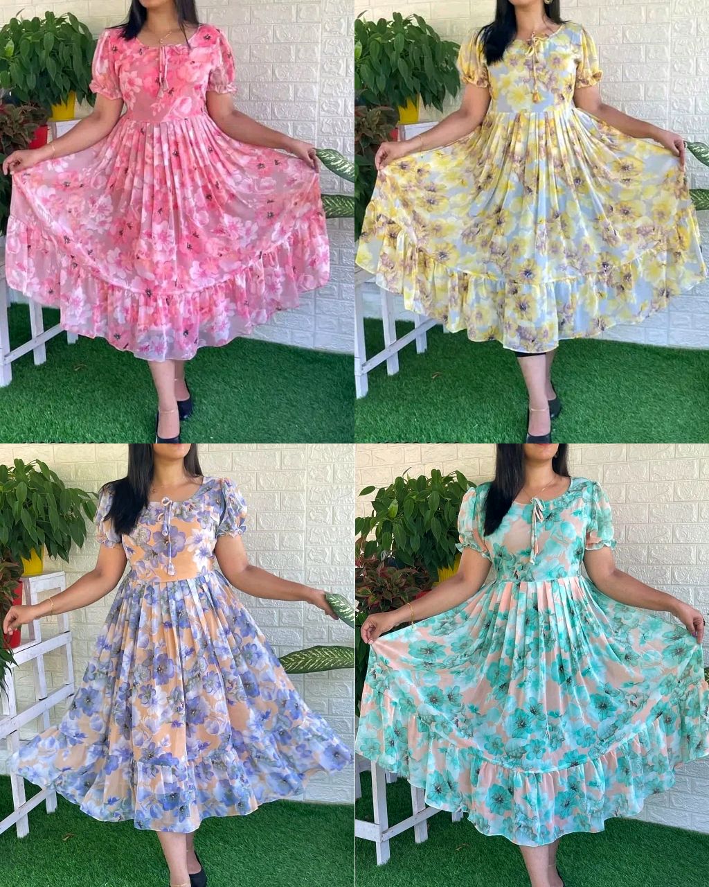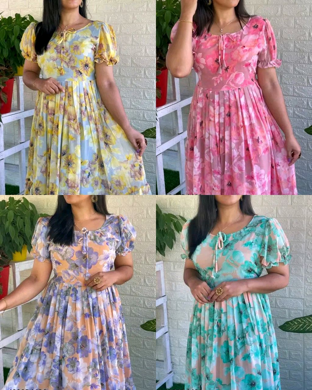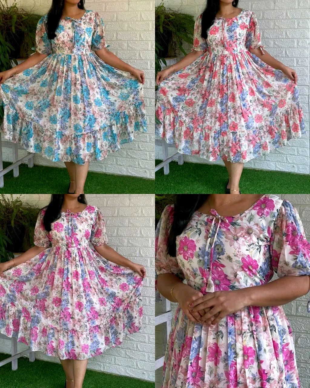 Urbane Latest Women Dresses 🔸 Fabric: Georgette 🔸Sleeve Length: Short Sleeves 🔸Pattern: Printed 🔸SIZE : S – 36, M – 38 in, L – 40 in, XL – 42