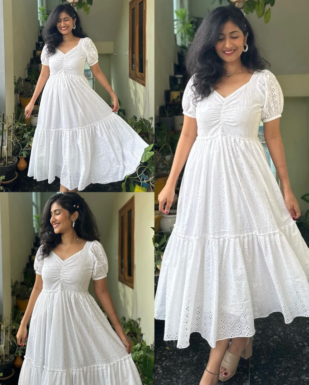 WHITE Casual Gown 🔸Fabric: Muslin 🔸Sleeve Length: Three-Quarter Sleeves 🔸Length:- 47-48 Inches 🔸SIZE : S(36) M(38) L(40) XL(42) XXL (44)