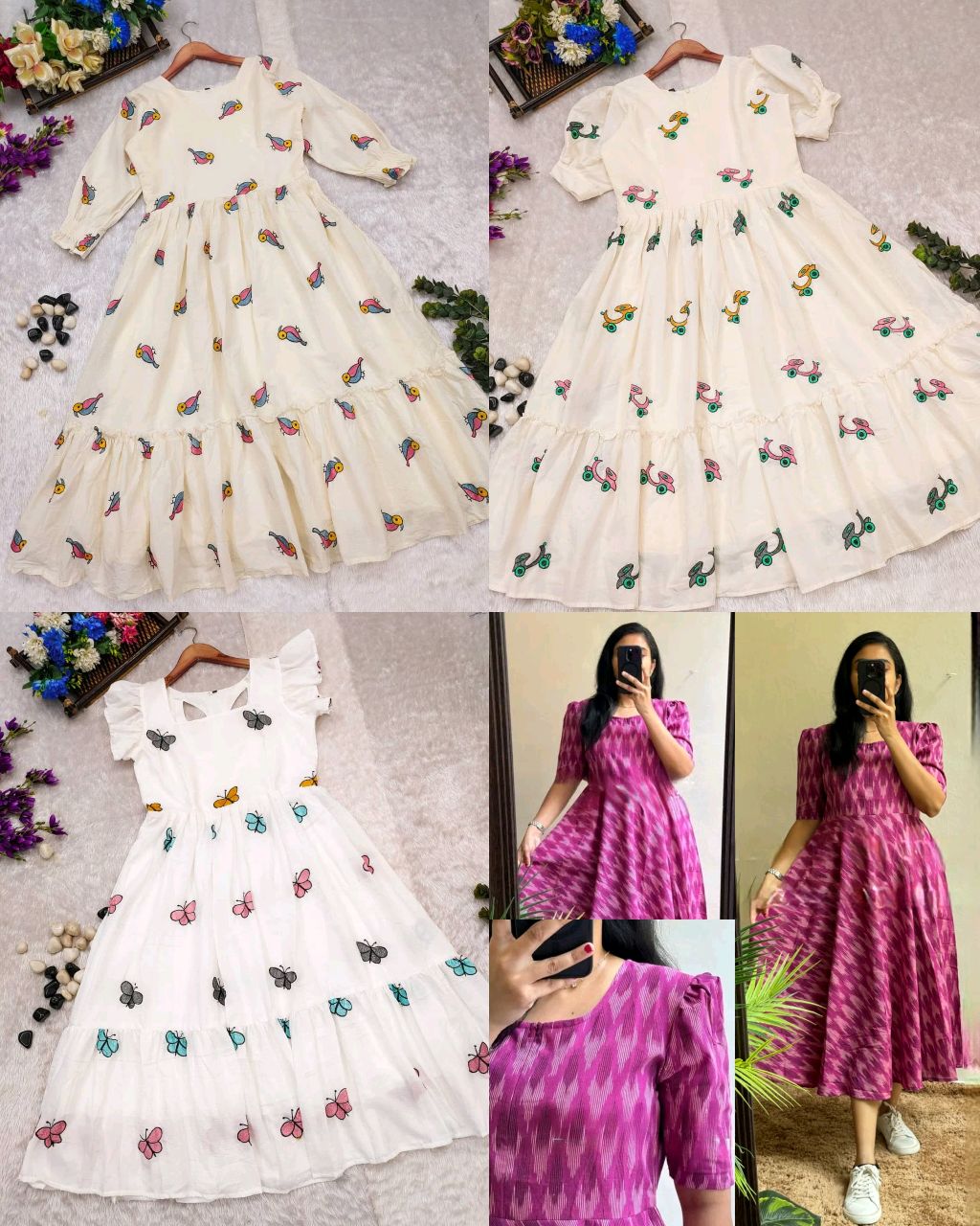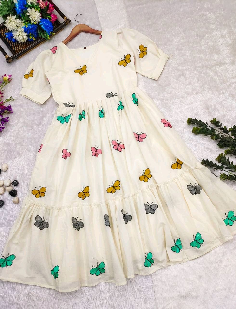 Wow Butterfly 🦋 & Unique Design Maxi❤️ 🔸Fabric: Kora Cotton 🔸Complete linning 🔸Length 46″+ 🔸BUST SIZE : M – 38 in, L – 40 in, XL – 42, XXL – 44