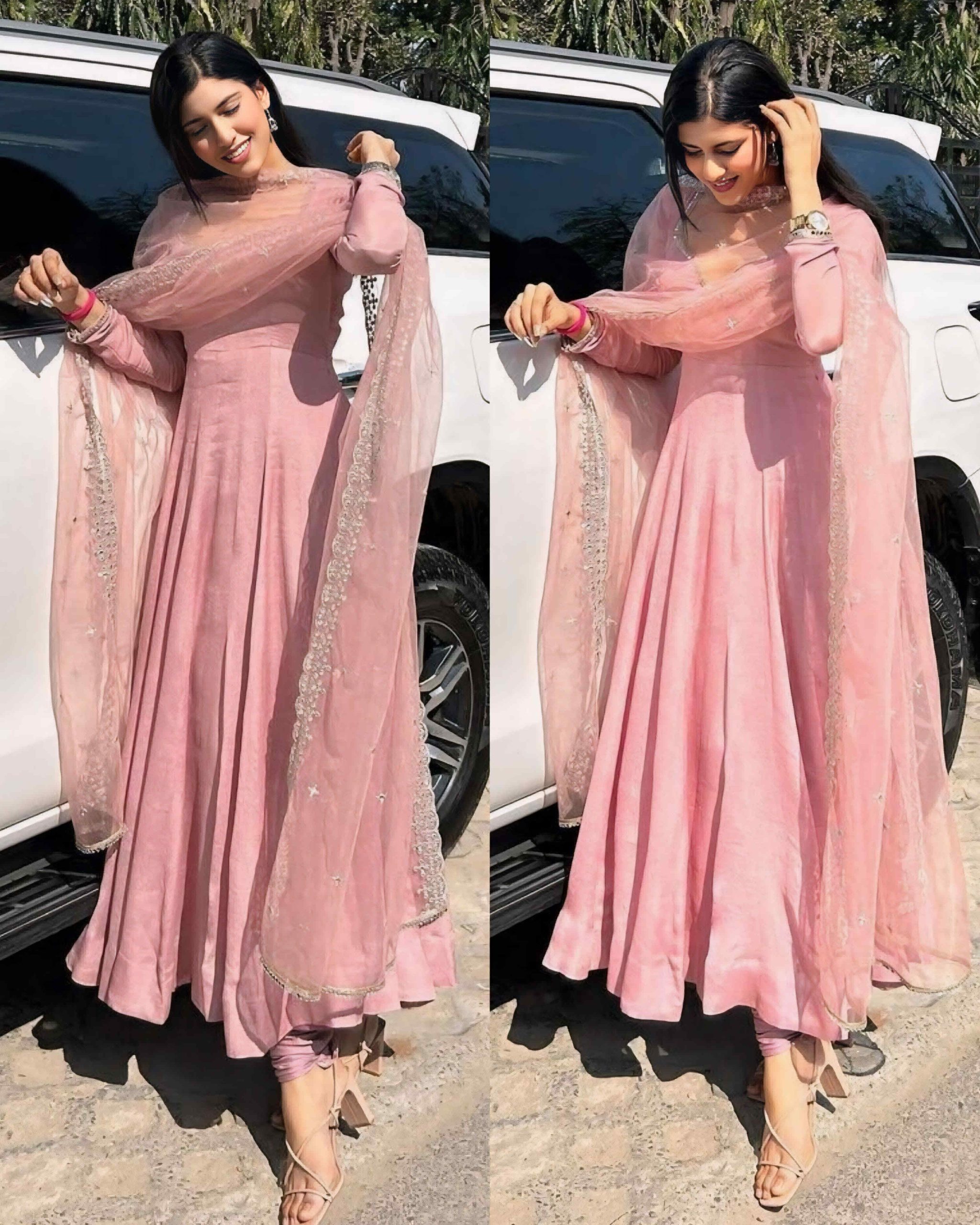 🔸Fabric: – pure chinon Anarkali gown of huge flair 🌸